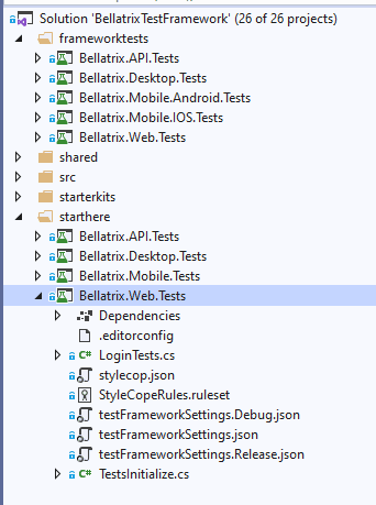 1. Open the BellatrixLoginTest.cs file. There you will find a sample test automating the login.